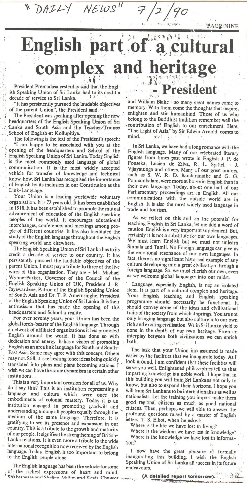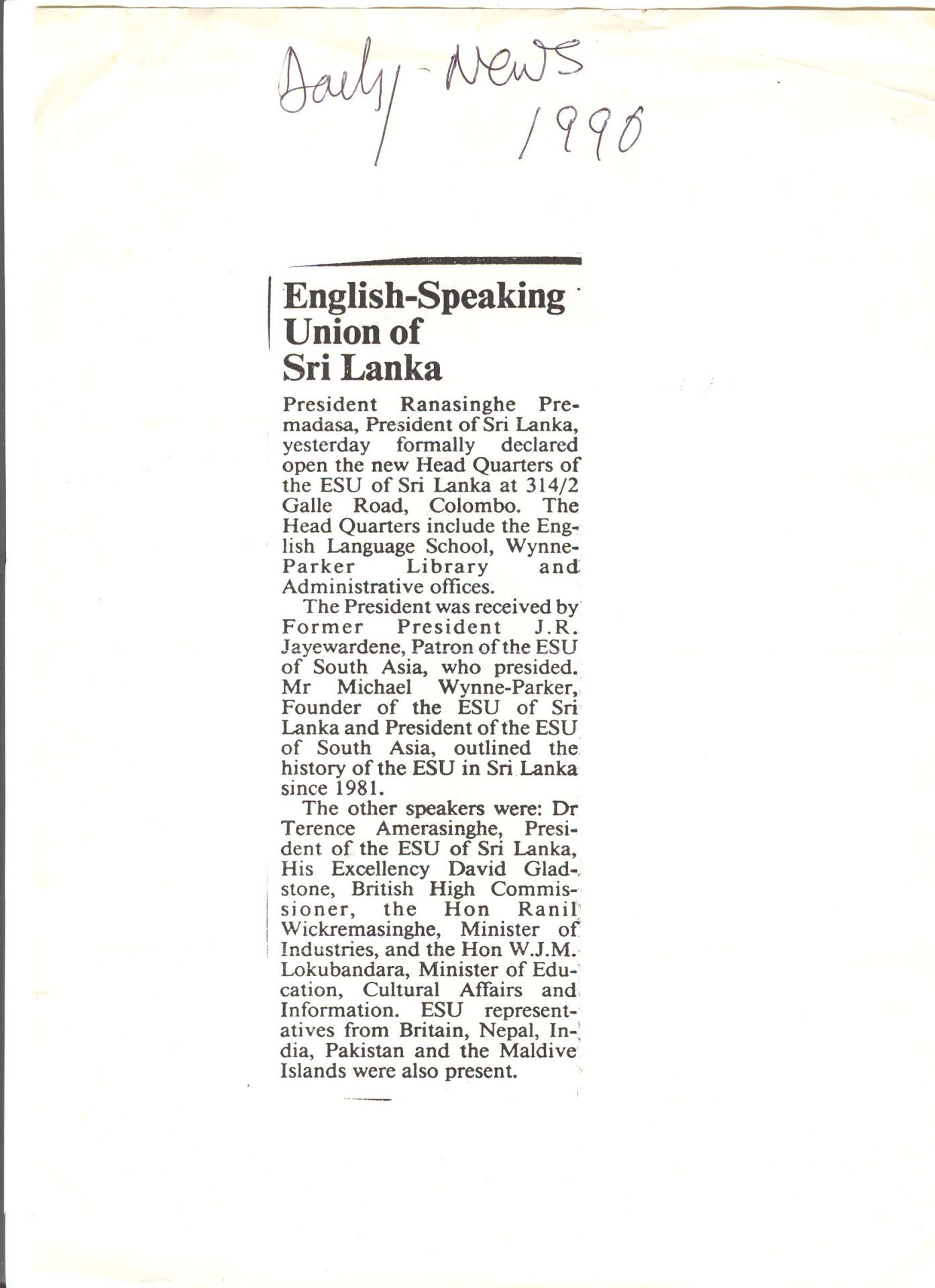 OPENING OF THE NEW ESU HQ IN COLOMBO by President Premadasa and Former President Jayawardene